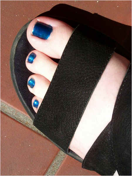 My black strappy sandals, modeled by my feet (in need of a pedicure!)